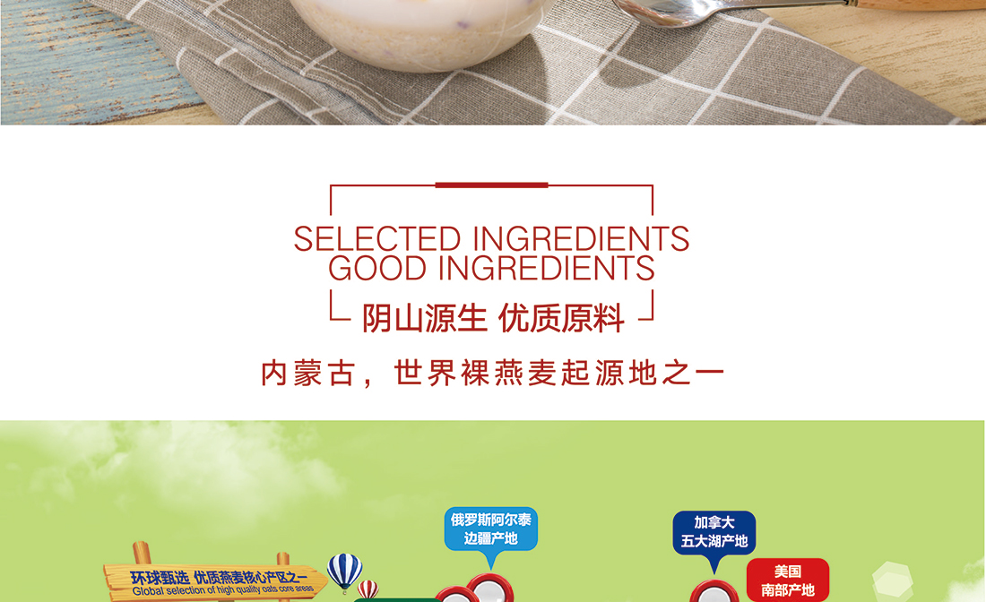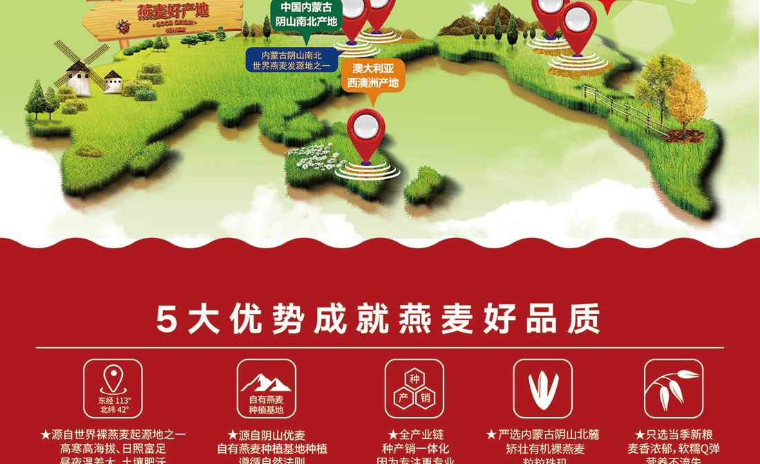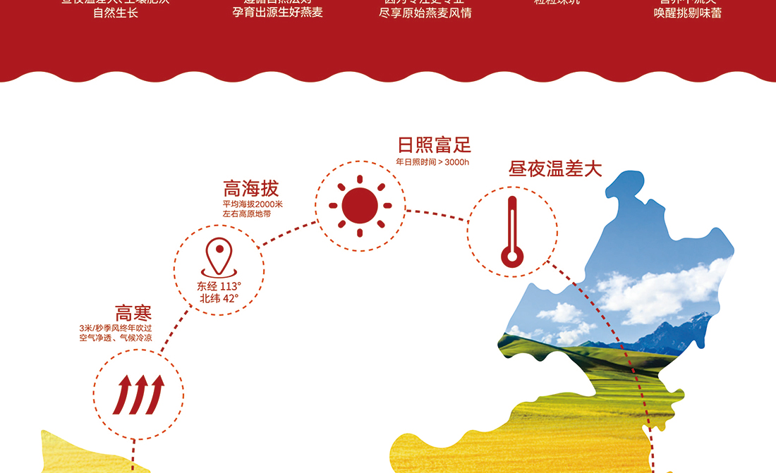 內(nèi)蒙古,世界裸燕麥起源地之一;陰山源生燕麥在此初生滿足生長規(guī)律一切所需,高寒、高海拔、日照充足;遵循自然法則,靠天滋養(yǎng),自然生長;