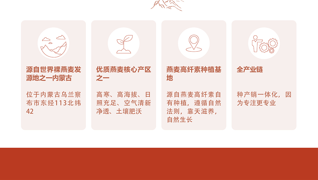 內蒙古,世界裸燕麥起源地之一;陰山源生燕麥在此初生滿足生長規(guī)律一切所需,高寒、高海拔、日照充足;遵循自然法則,靠天滋養(yǎng),自然生長;