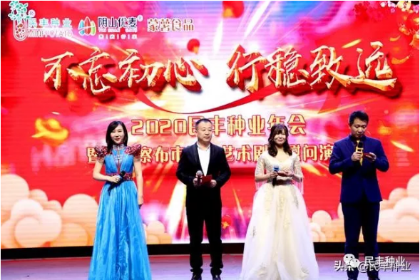 【摘要】2020年1月15日,民豐種業(yè)召開2019年終總結會、年度獎金現場發(fā)放會,并舉行2020年會暨烏蘭察布市民族藝術劇院慰問演出活動,總部及子公司350余人參加。董事長盧文兵對公司2019年工作及存在問題進行了總結,并對2020年及未來發(fā)展作了明確規(guī)劃,同時為各農場發(fā)放了現金獎勵。十幾載耕耘,不負韶華,民豐人默默蓄勢,只為明日薄發(fā)!