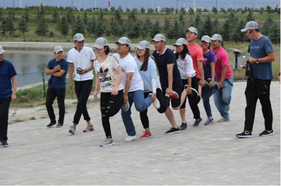 本次擴展訓(xùn)練分別從德、智、體、美、勞五項趣味進行了才藝大比拼。三組人員分別進入各自的營地,將隊名、口號、隊歌寫在旗幟上規(guī)定時間內(nèi)展示給大家。令所有人都大跌眼鏡的是三組隊員的隊名如出一轍,完全一樣,他們都是—《戰(zhàn)狼隊》。隨后,戰(zhàn)狼三個隊展開了“肺活量大比拼”、“瞎子”背“瘸子”、“智能撲克傳遞”、“毛毛蟲速爬”、“燒烤比賽”等多個賽事。
