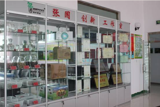 創(chuàng)新工作室建立在馬鈴薯研究院,以自治區(qū)勞動(dòng)模范總經(jīng)理張國(guó)命名。工作室設(shè)立了成果展示柜,集中展示了工作室成立以來總經(jīng)理張國(guó)和我公司在馬鈴薯領(lǐng)域科研發(fā)展領(lǐng)域方面取得的創(chuàng)新成果和獲得的榮譽(yù)。工作室組織機(jī)構(gòu)、工作計(jì)劃、目標(biāo)、內(nèi)容、簡(jiǎn)介、科研課題項(xiàng)目管理制度、管理辦法全部上墻,分別掛牌成立了實(shí)驗(yàn)準(zhǔn)備室、病理鑒定室、理化分析室、育種資源室和脫毒培養(yǎng)室。